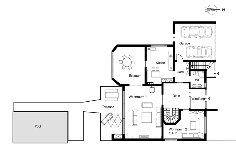 FrontansichtEingangsbereichEingangsbereichWohnzimmerBüroEsszimmerBüroSchlafzimmerSchlafzimmerSchlafzimmerBadBalkonBadBadBadKücheTreppenaufgangTerrasseTerrasseRückansichtPoolbebaubares Grundstückbebaubares GrundstückDachbodenKellergeschossErdgeschossObergeschossEnergieausweis