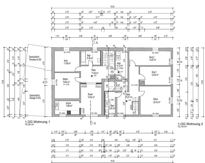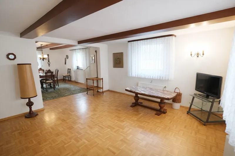 Auf einem ca. 965 m² großen Grundstück steht, zurückversetzt von einer ruhigen Seitenstraße, dieses zum Verkauf stehende Zweifamilienhaus. Die Immobilie bietet vielseitige Nutzungsmöglichkeiten und bietet insgesamt ca. 357 m² Wohn-/ [...]